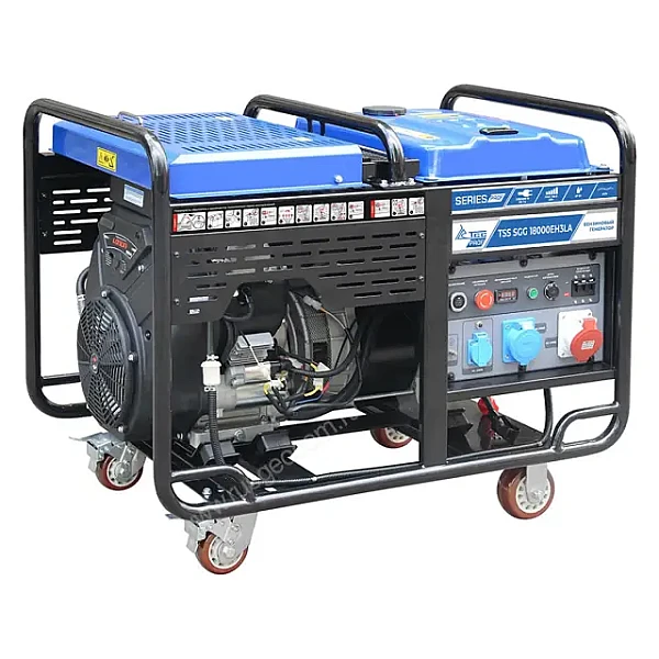 Бензиновый генератор TSS SGG 18000EH3LA - самая мощная из мобильных трехфазных электростанций бренда. Номинальные 17 кВт позволяют полностью обеспечить электроэнергией жилой или рабочий объект с сетью 380 В, установка подойдет для работы на стройплощадке, в мастерской или на производстве. К ней также можно подключать однофазные приборы и электроинструменты, для которых доступно около трети мощности.