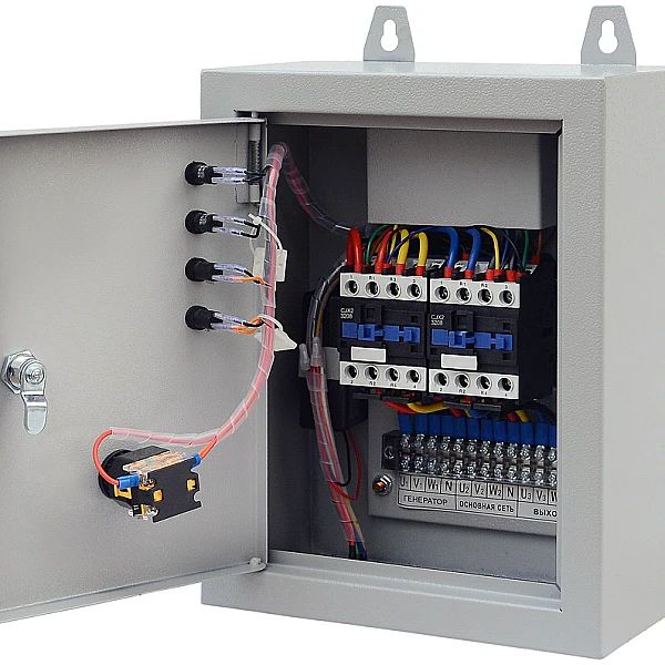 Коммутационное оборудование АВР-С ТСС 12000/400 заключено в металлический кожух, который защищает электронику от пыли и воды. Кожух, при необходимости, можно закрыть на замок - актуальная функция с учетом того, что внутри расположены провода под напряжением. Кроме того, такая особенность поможет предотвратить нежелательный доступ.