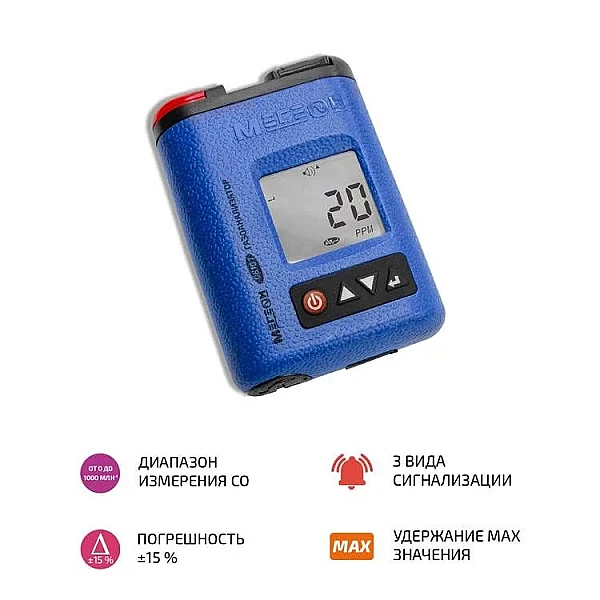 Газоанализатор МЕГЕОН 08107 – переносное измерительное средство, которое используется для контроля состава и количества концентраций компонентов монооксида углерода в воздухе. Принцип работы прибора основывается на съеме значений электрического тока, вырабатываемом электрохимическим сенсором в результате химической реакции с участием частиц исследуемого газообразного вещества. Пластиковый пылевлагозащищенный корпус изготовлен из качественных материалов и не подвержен деформации.
