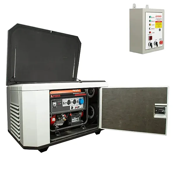 Генератор A-iPower A8000EAX в супертихом зимнем кожухе 1400SS RAL 7035 + блок автозапуска A-iPower 230 В, 50 А