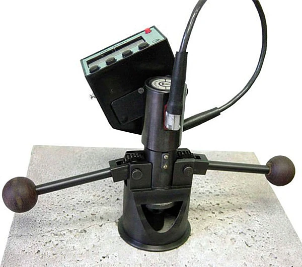 Электронный силоизмеритель прибора фиксирует усилие местного разрушения бетона при вырыве из него анкера и преобразует в прочность.