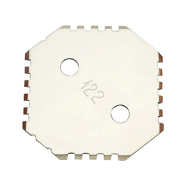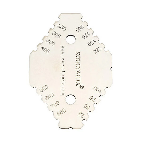 Толщиномер-гребенка представляет из себя шаблон, изготовленный из пластины нержавеющей стали. Выступы и опорные базы имеют клиновидную форму, обеспечивающую их легкий вход в порошок.