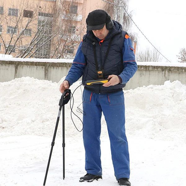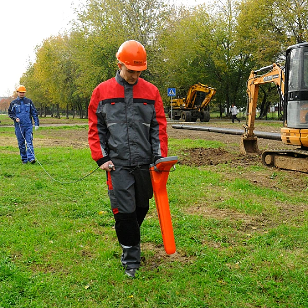 Поиск трассы электропроводящей коммуникации при помощи электромагнитного датчика (ЭМД).