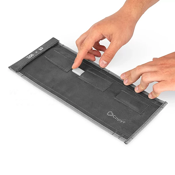 В каждом углу кассеты Спрут СМ вшито по два магнита, которые обеспечивают надежную фиксацию кассет с рентгеновской пленкой на поверхности объекта контроля. Если длина кассеты превышает 260 мм, то для обеспечения наилучшего прижима в кассеты вшиваются дополнительные магниты (по одному на каждые 130 мм длины изделия).