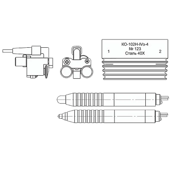 • контрольный образец КО-102Н-IV-3(для проверки настройки преобразователя для контроля резьбы из ферромагнитной стали) или КО-102Н-IV-4 (для проверки настройки преобразователя для контроля резьбы из немагнитной нержавеющей стали);