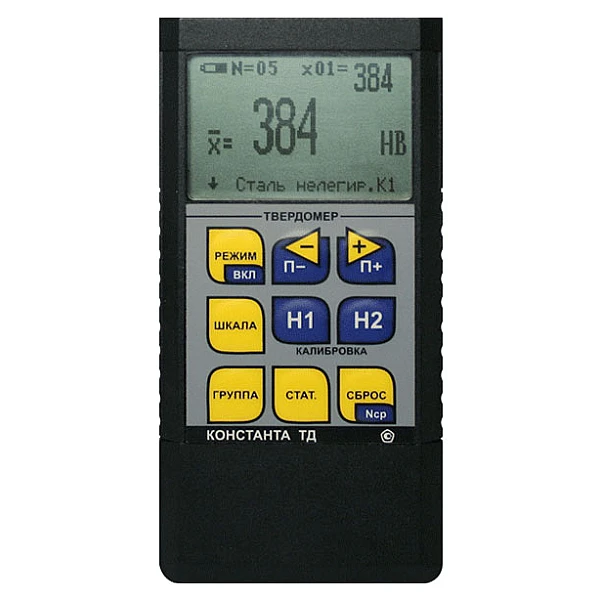 Портативный твердомер «Константа ТД» с набором сменных преобразователей предназначен для измерения твёрдости всех типов сталей (включая нержавеющие), чугунов, цветных металлов по всем стандартизованным в России шкалам твердости – Роквелла (HRC), Бринелля (HB), Виккерса (HV) в полевых, лабораторных условиях и в цехах. Применим также для измерения σв – предела прочности (временного сопротивления) конструкционных углеродистых сталей.