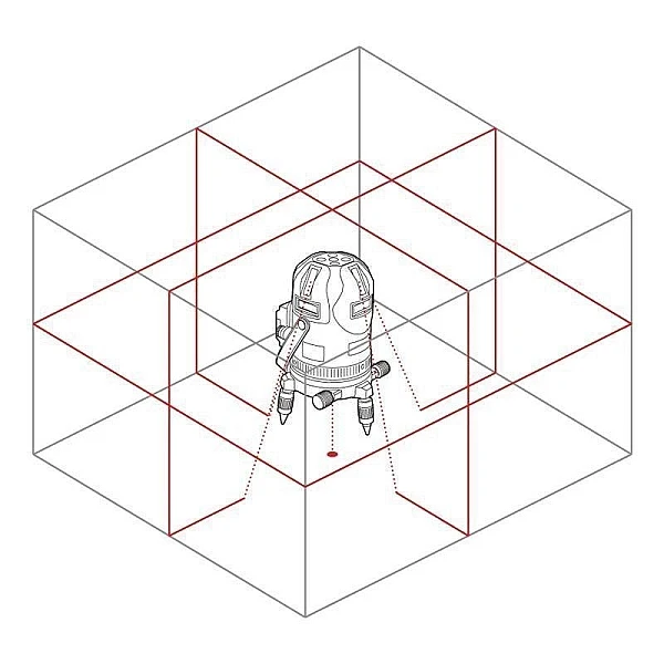 Лазерный уровень RGK UL-44W оснащается специальным лазером увеличенной мощности и проецирует четыре вертикальных и горизонтальную плоскость с разверткой 360°. Линии, которые строит этот лазерный нивелир, отлично видны при любом освещении на дистанции до 20 метров, а с использованием приемника лазерного излучения – до 50 метров. Корпус UL-44W имеет поворотную конструкцию и оснащен двумя винтами наводки и горизонтальным лимбом, что в сочетании с широкой разверткой позволяет избежать перестановок прибора, а, значит, и потери точности.