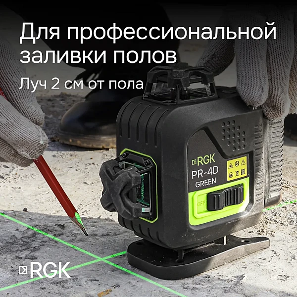 Купить Лазерный уровень RGK PR-4D Green с зеленым лучом в Кирове легко — просто позвоните по телефону: 8-800-551-11-01