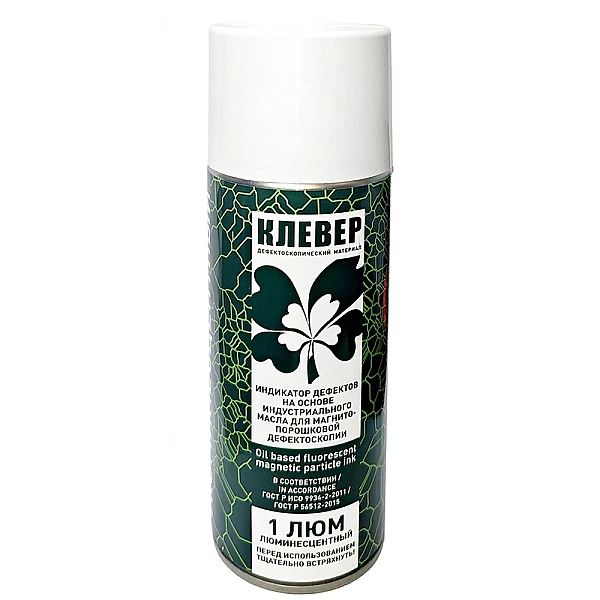 Люминесцентный индикатор дефектов для магнитопорошковой дефектоскопии "КЛЕВЕР 1ЛЮМ" - предназначен для обнаружения поверхностных и подповерхностных дефектов в изделиях, деталях и полуфабрикатах из ферромагнитных материалов при проведении неразрушающего контроля методом магнитных частиц по ГОСТ Р 56512-2015 с использованием ультрафиолетовых осветителей с длиной волны 365нм.