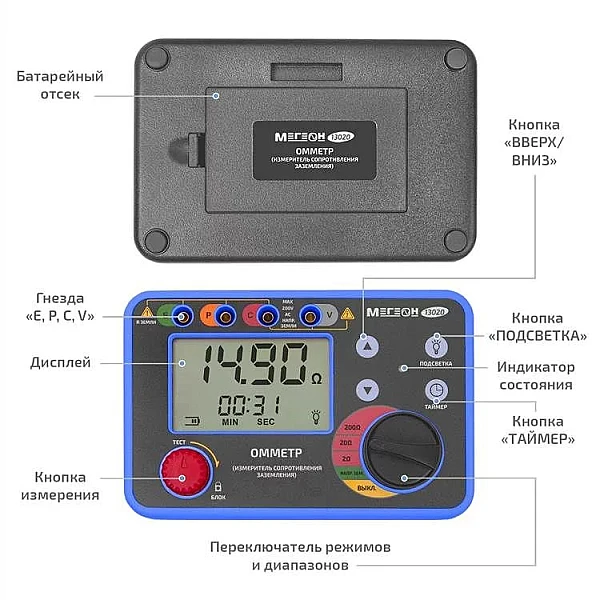 Купить Омметр (измеритель сопротивления заземления) МЕГЕОН 13020 в Кирове легко — просто позвоните по телефону: 8-800-551-11-01