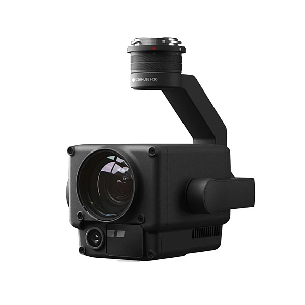 Гибридная камера Zenmuse H20 на трехосевом подвесе для дрона DJI Matrice 300 RTK – в одном корпусе размещены: 12 Мп широкоугольная камера, 20 Мп камера с 23-кратным оптическим зумом и лазерный дальномер с диапазоном измерений 3-1200 м.