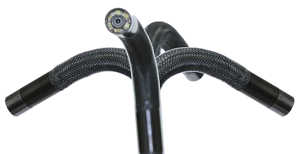 Обновленная модель с увеличенной длиной зонда. Промышленный видеоэндоскоп с электронной артикуляцией в 4-х направлениях (в двух плоскостях) диаметром 6 мм, с дисплеем 4.3'' LCD и зондом длиной 1,5 м. Прибор имеет функции фото и видеозаписи, автоматического управления положением зонда (базовая точка), сервоприводами камеры. Функция разворота камеры «в обратном направлении