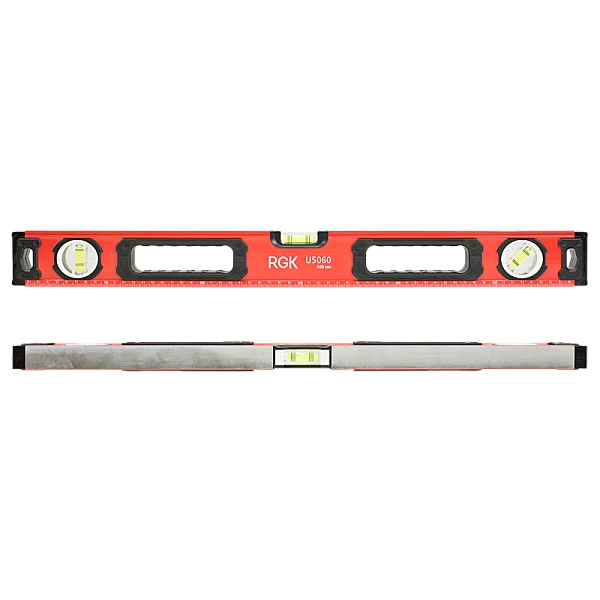 Магнитный уровень RGK U5060 длиной 60 сантиметров оснащен двумя магнитами на противоположных сторонах для крепления уровня на металлической поверхности, чтобы освободить руки при проведении разметки.
