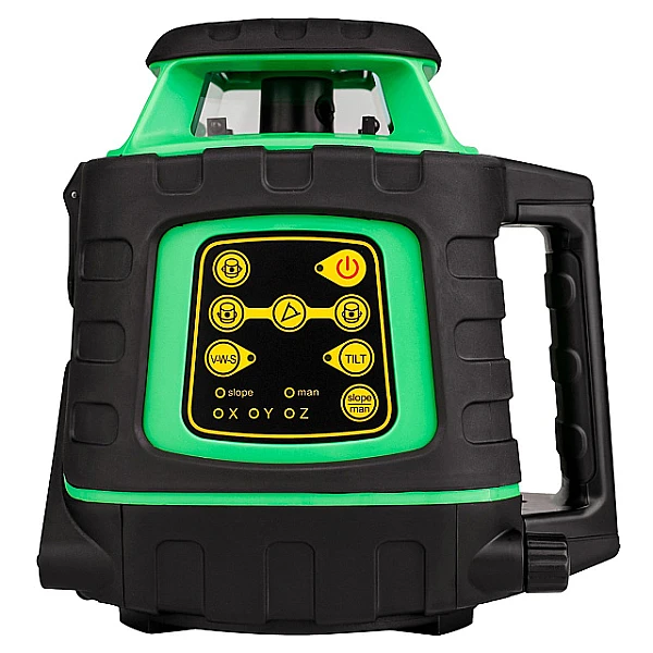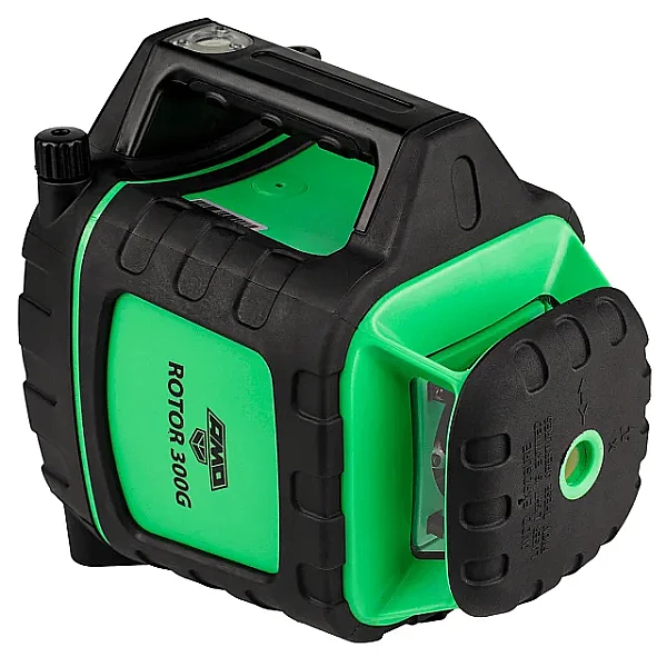 Ротационный лазерный нивелир AMO ROTOR 300G проецирует вертикальную и горизонтальную плоскости с разверткой на 360°. Прибор позволяет с высокой точностью проводить выравнивание дорожного полотна, выполнять разметку во время таких строительных работ, как заливка полов, возведение стен и фундаментов. Дальность работы составляет 600 м. Нивелир имеет яркий лазер зеленого цвета, который отлично видно при работе как внутри, так и снаружи помещения. Лазерный уровень работает от четырех щелочных батареек или перезаряжаемого аккумулятора.