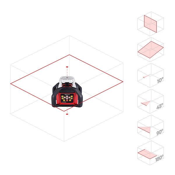Как профессиональный лазерный уровень, ротационный лазерный нивелир RGK SP 610 отлично подходит как для внутренних работ, так и для работы на улице. Прибор оснащён инновационной лазерной системой второго класса, которая позволяет работать на достаточно большом расстоянии. Вращающаяся головка нивелира RGK SP 610 проецирует плоскость на 360°, которая хорошо видна в помещении. В комплект с лазерным уровнем RGK SP 610 входит специальный приемник лазерного излучения, благодаря которому вы даже в яркий солнечный день сможете работать на дистанциях до 360 метров.