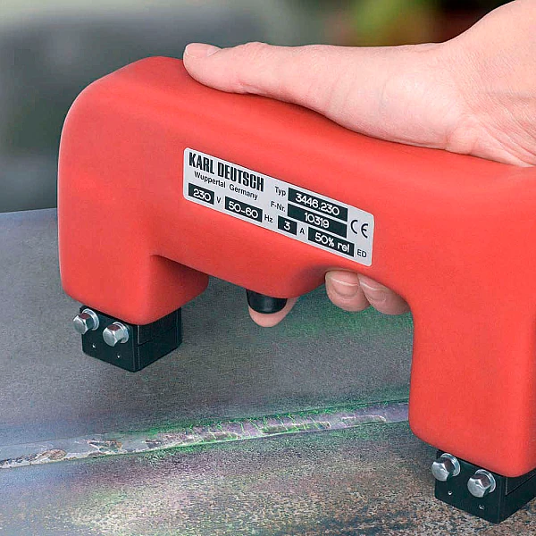 Ручной электромагнит DEUTROPULS — это портативный прибор для магнитопорошкового метода контроля с высокими характеристиками намагничивания, легок в обращении и имеет различные варианты применения.