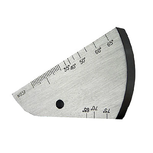 - Определение угла ввода наклонного ПЭП. Для этого ПЭП устанавливают в положения В, для углов ввода 35...65°, или Г для углов ввода 65...75°. Величину угла считывают при максимальной амплитуде эхо-сигнала от отверстия диаметром 5 мм по риске угловой шкалы напротив точки выхода УЗ луча;