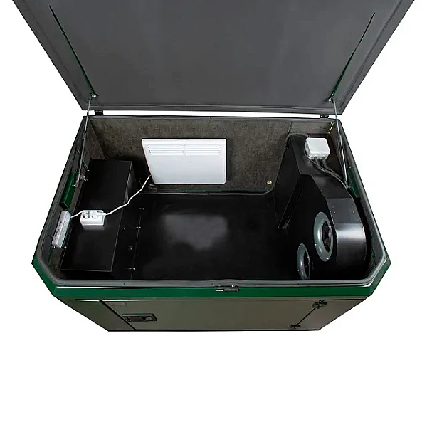 Тепловой конвектор поддерживает в кожухе температуру 3–5 °C для гарантированного запуска уличного генератора в зимний период.
