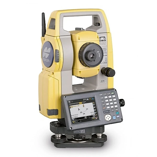 Управление прибором производится с помощью сенсорного экрана или с использованием буквенно-цифровой клавиатуры. Для запуска процесса измерений на боковой грани корпуса тахеометра имеется дополнительная кнопка – это конструкционное решение позволяет повысить стабильность угловых отсчетов: вы можете контролировать наведение зрительной трубы на выбранную точку, а нажатие кнопки не сбивает положения прибора.