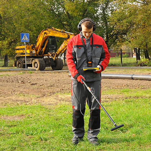Поиск трассы электропроводящей коммуникации при помощи электромагнитного датчика (ЭМД).