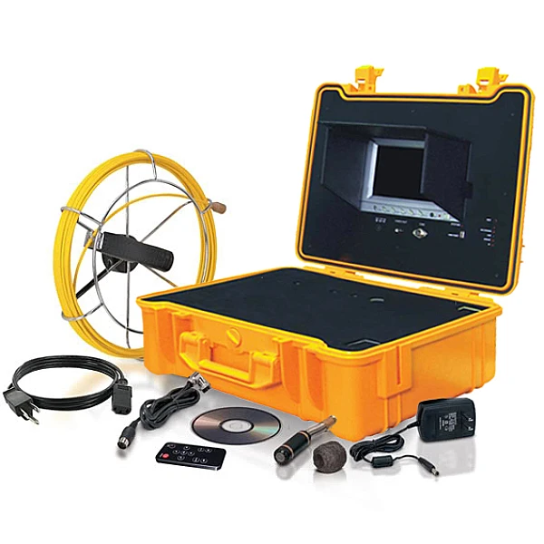 Компактная переносная телеинспекционная система с кабелем 40 метров, цветной камерой с встроенным зондом 512 Гц, встроенным аккумулятором, встроенным микрофоном и функцией записи на USB-flash накопитель или Micro SD (TF) карту памяти.